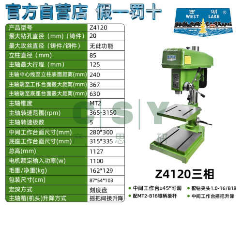 "杭州西湖台钻Z512b Z516 高精度精密重型工业级380v钻孔台式钻床-西湖正品Z4120/三相380V/1100W 工业级"商品可能已被商家删除,您可查看其他相似商品!