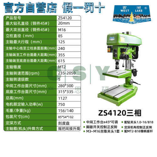 "西湖钻攻一体机钻攻两用台钻ZS4112 ZS4120 JZS-25B 5032钻孔攻丝-西湖ZS4120三相/750W 摇把升降/铸M16钢M12"商品可能已被商家删除,您可查看其他相似商品!