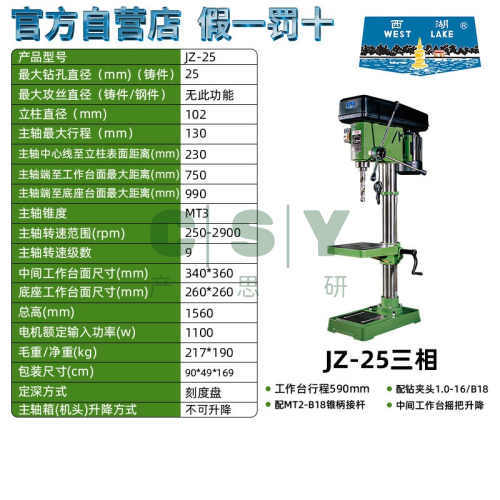"杭州西湖台钻Z512b Z516 高精度精密重型工业级380v钻孔台式钻床-西湖正品加高重型JZ-25三相1100W 工业级"商品可能已被商家删除,您可查看其他相似商品!