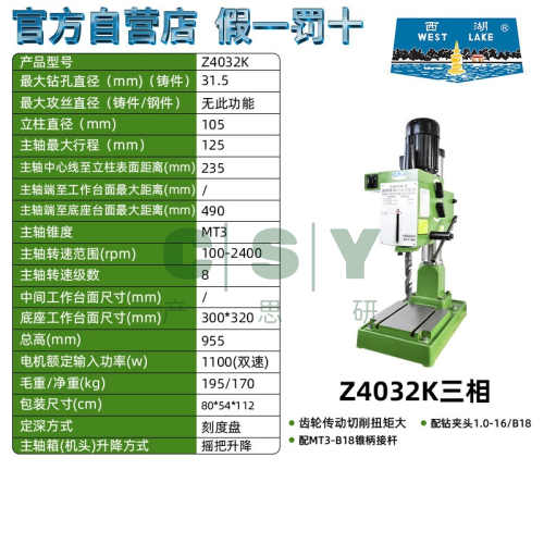 "杭州西湖台钻Z512b Z516 高精度精密重型工业级380v钻孔台式钻床-西湖正品Z4032K强力钻/三相380V 工业级"商品可能已被商家删除,您可查看其他相似商品!
