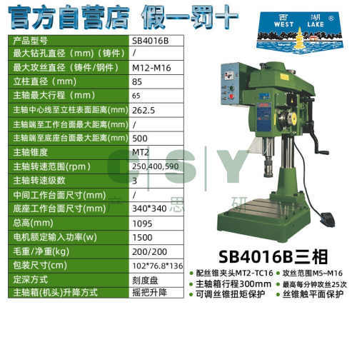 "西湖攻丝机西湖牌攻丝机台式攻牙机西湖swj3 6 6A 10 12 16 20 33-杭州西湖牌SB4016B三相380v原装正品"商品可能已被商家删除,您可查看其他相似商品!