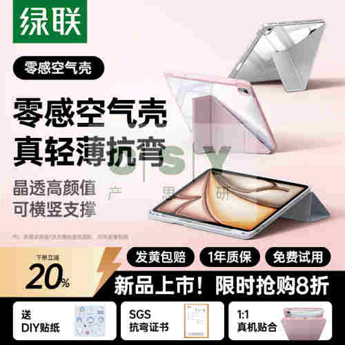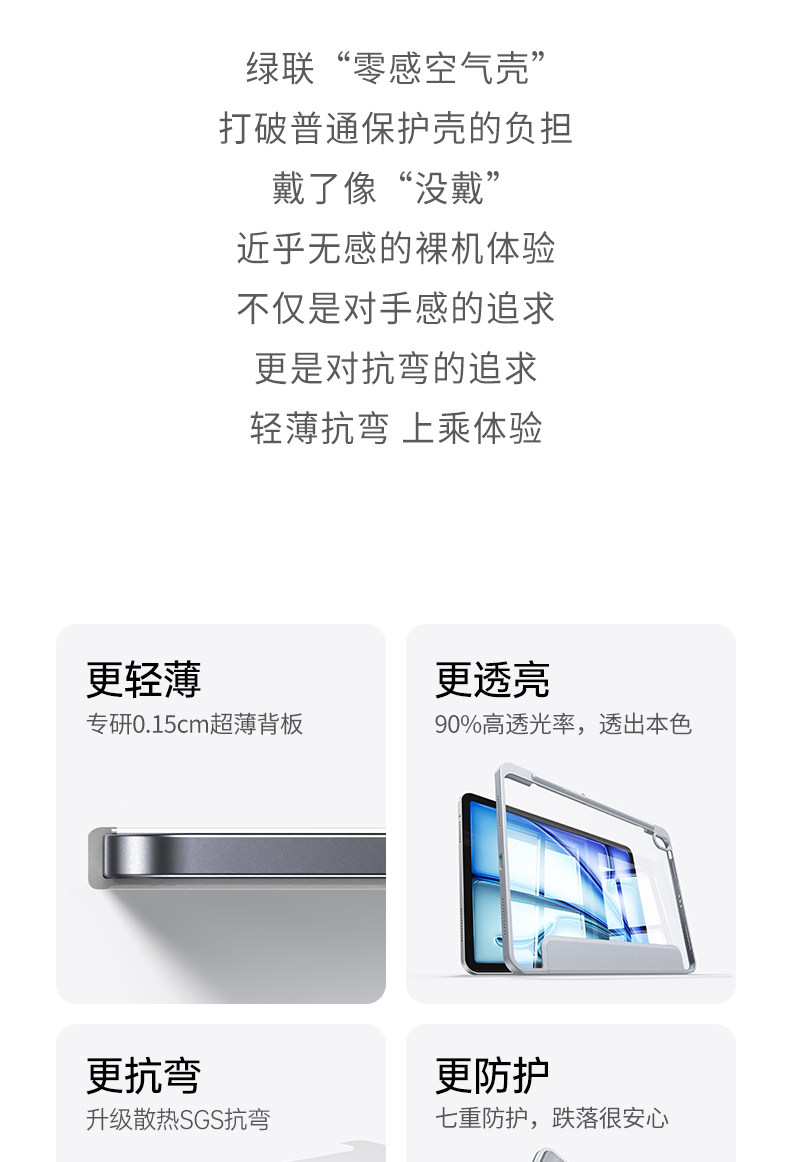 "绿联2026新iPad11Air8保护壳7Pro套11寸25a16第10十代适用苹果1221平板4九9防弯摔8带笔槽透明全包轻薄亚克力-【收藏加购】享发黄包赔新升级实色边框360°不发黄一年质保 iPad Air8 2026款 (11英寸) M4"商品可能已被商家删除,您可查看其他相似商品!