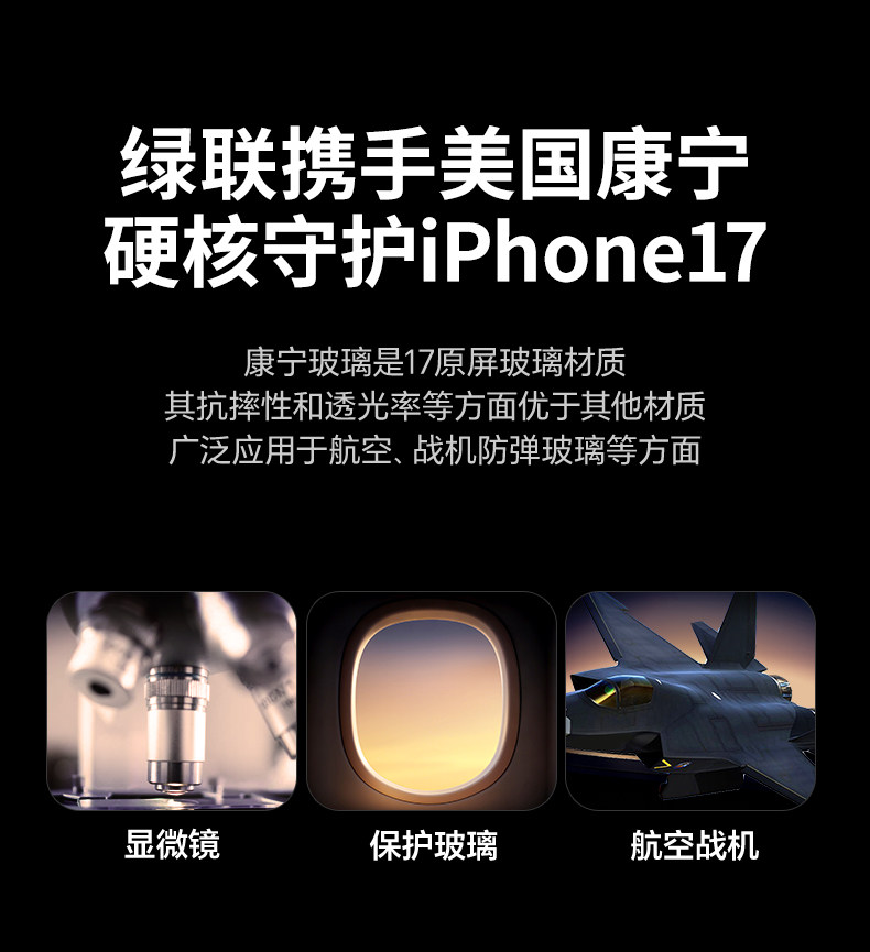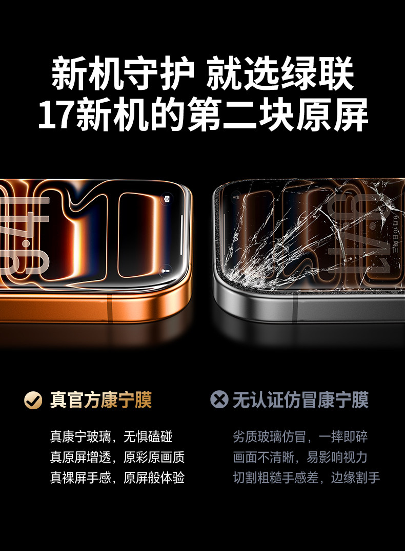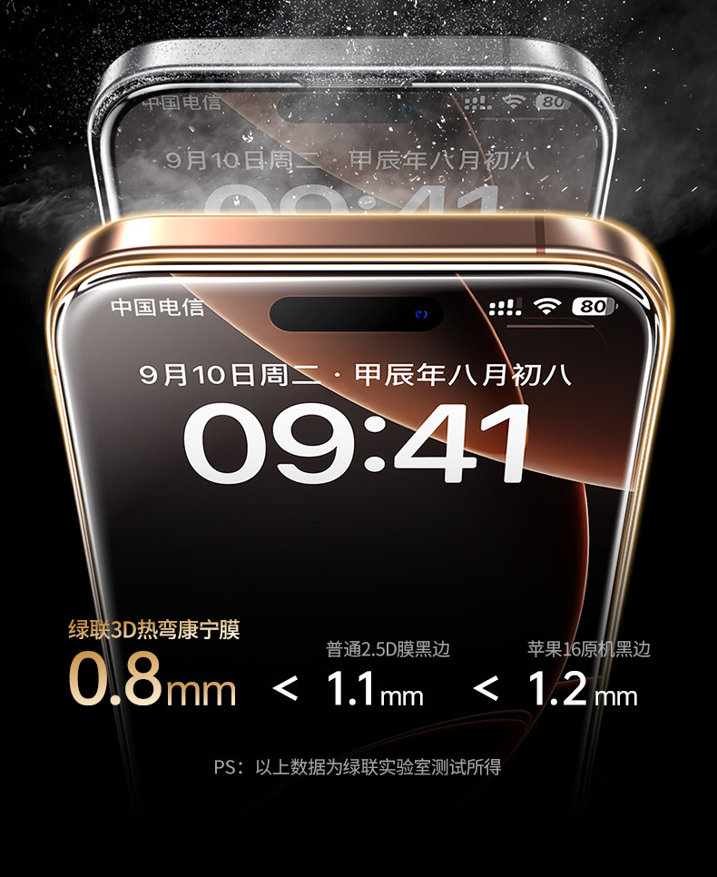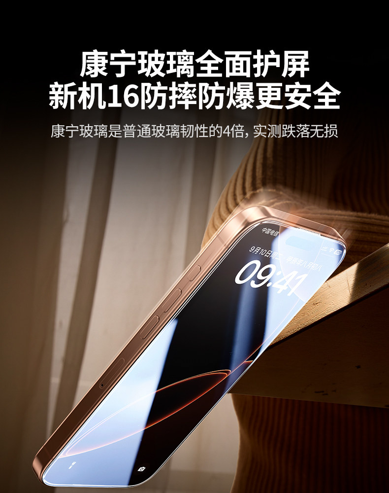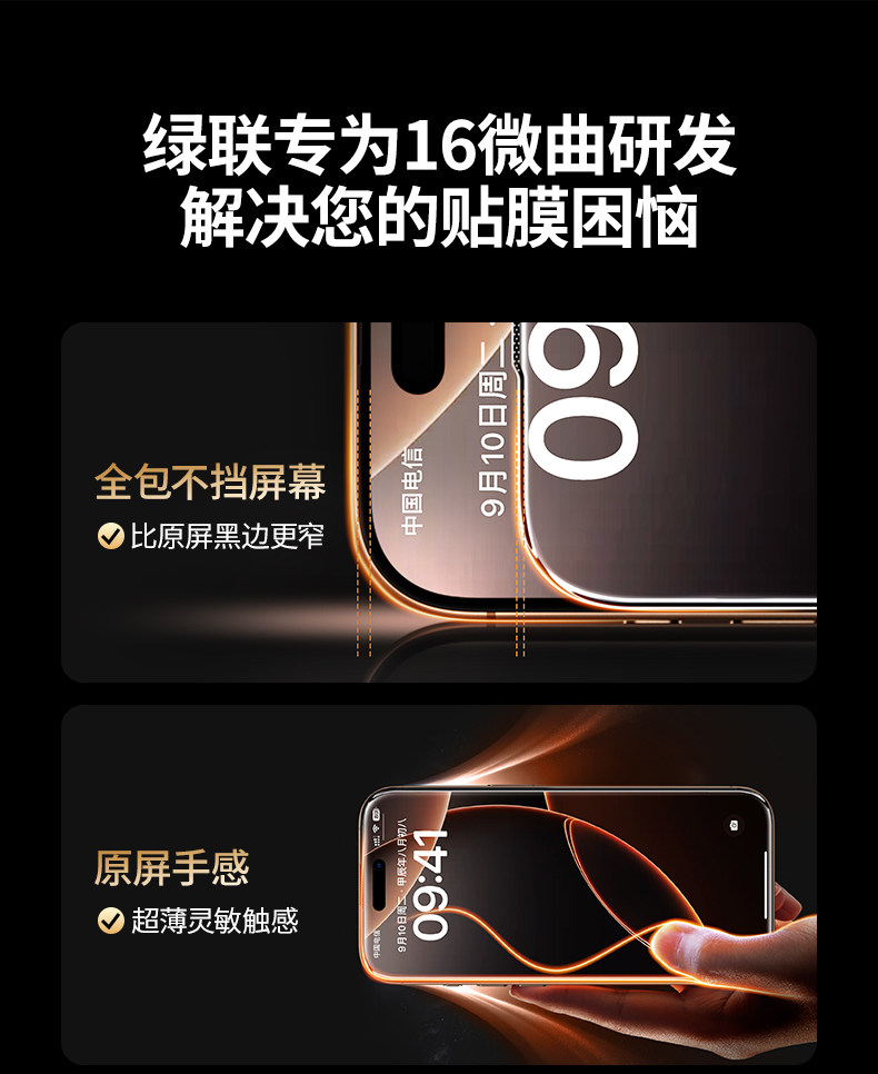 "【美国康宁授权】绿联3D热弯康宁膜适用iPhone17pro max钢化膜苹果16pro新款超薄手机全屏全包16PM贴膜不挡屏-【17量身定制】不精准/有气泡/贴歪包赔 iPhone 16 Pro Max"商品可能已被商家删除,您可查看其他相似商品!
