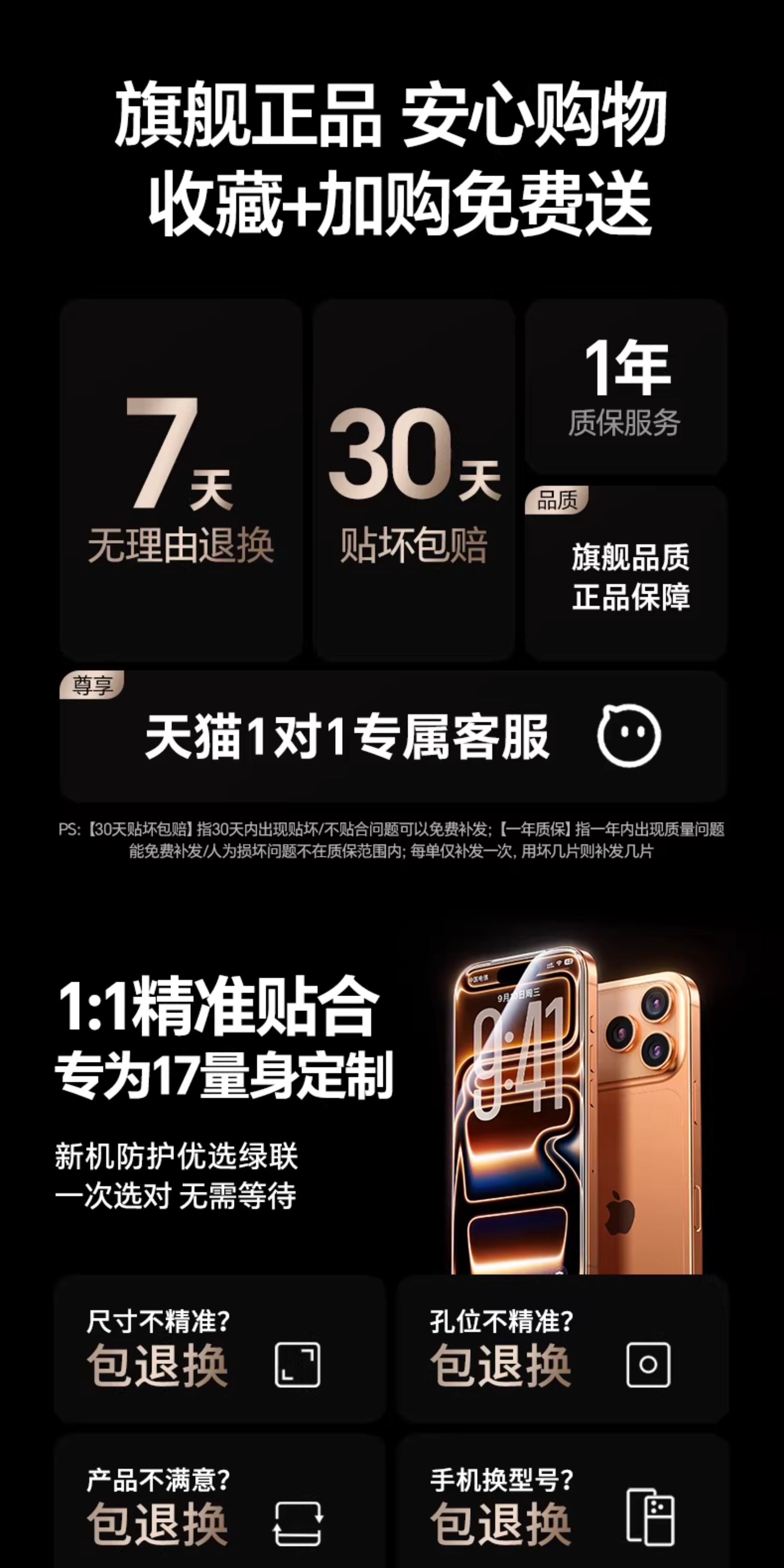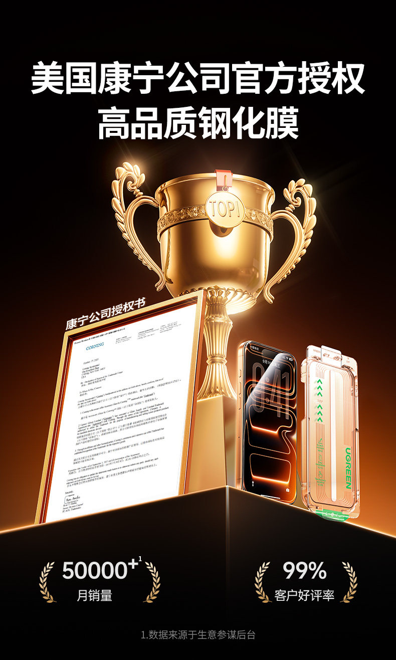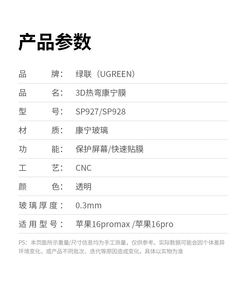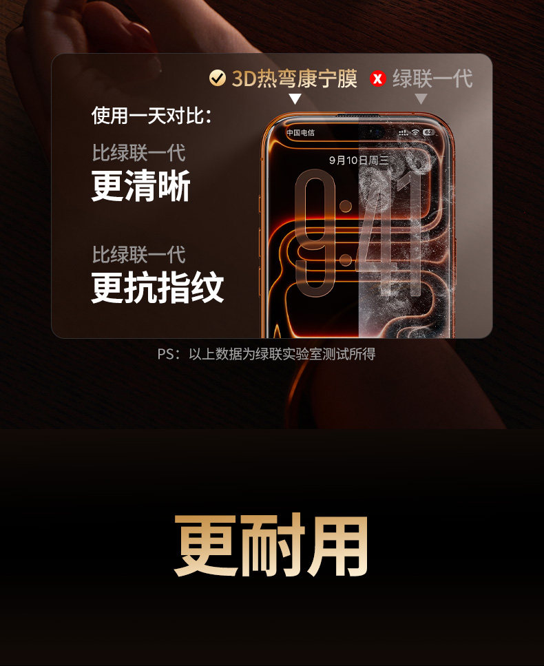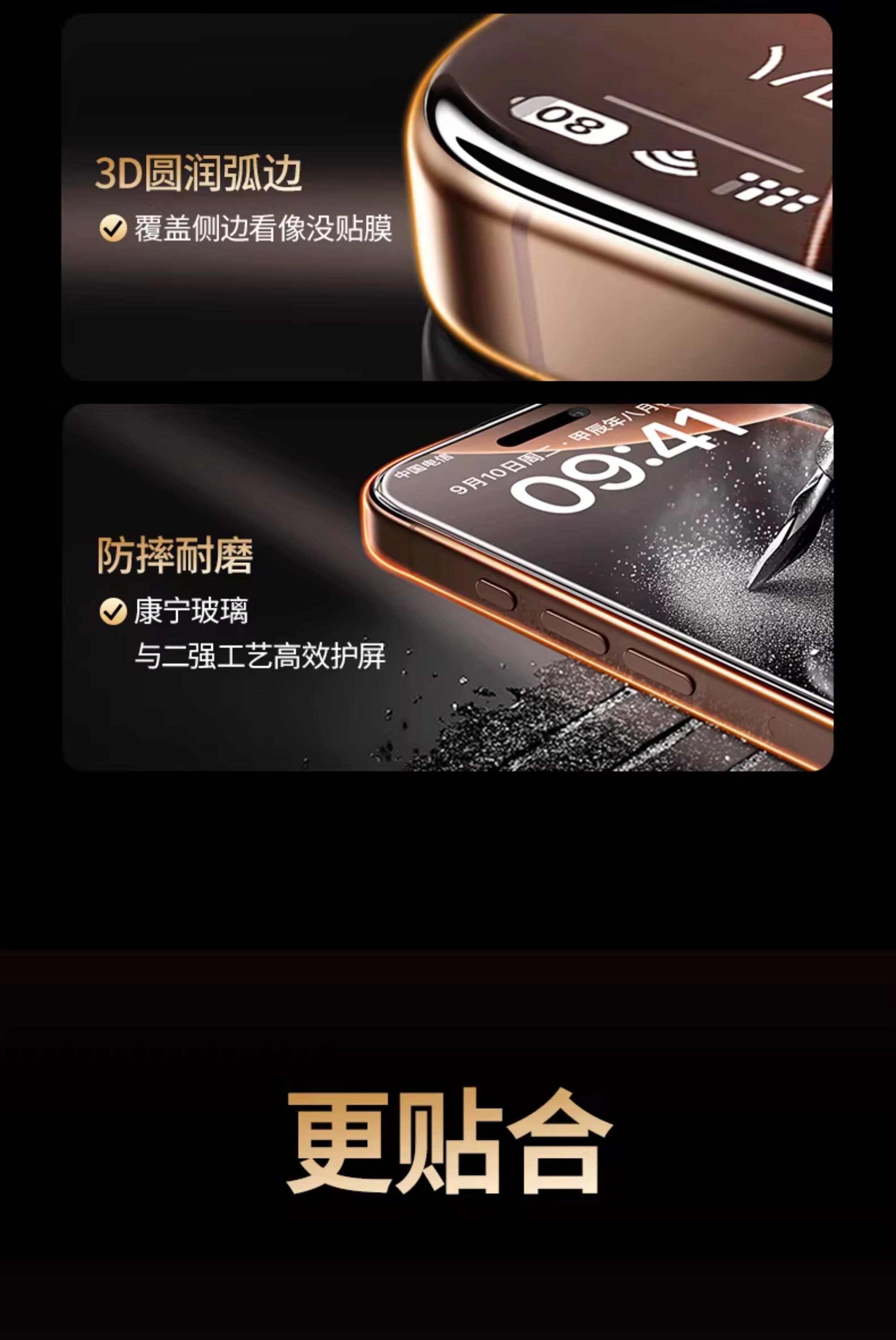 "【美国康宁授权】绿联3D热弯康宁膜适用iPhone17pro max钢化膜苹果16pro新款超薄手机全屏全包16PM贴膜不挡屏-【17量身定制】不精准/有气泡/贴歪包赔 iPhone 16 Pro Max"商品可能已被商家删除,您可查看其他相似商品!