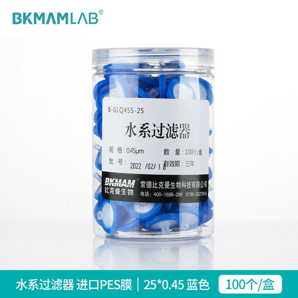 "比克曼生物针式过滤器微孔滤膜一次性过滤膜针头针筒式尼龙玻璃纤维PTFE有机系水系MCE膜滤膜滤头0.22 0.45um-水系 进口PES膜 25*0.45 蓝色 100个/盒"商品可能已被商家删除,您可查看其他相似商品!