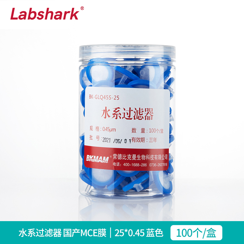 "比克曼生物针式过滤器微孔滤膜一次性过滤膜针头针筒式尼龙玻璃纤维PTFE有机系水系MCE膜滤膜滤头0.22 0.45um-水系国产MCE膜 25*0.45 蓝 100个/盒"商品可能已被商家删除,您可查看其他相似商品!