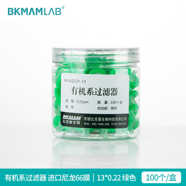 "比克曼生物针式过滤器微孔滤膜一次性过滤膜针头针筒式尼龙玻璃纤维PTFE有机系水系MCE膜滤膜滤头0.22 0.45um-有机系 进口尼龙66膜 13*0.22 绿色 100个/盒"商品可能已被商家删除,您可查看其他相似商品!