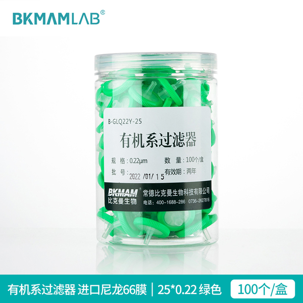 "比克曼生物针式过滤器微孔滤膜一次性过滤膜针头针筒式尼龙玻璃纤维PTFE有机系水系MCE膜滤膜滤头0.22 0.45um-有机系 进口尼龙66膜 25*0.22 绿色 100个/盒"商品可能已被商家删除,您可查看其他相似商品!