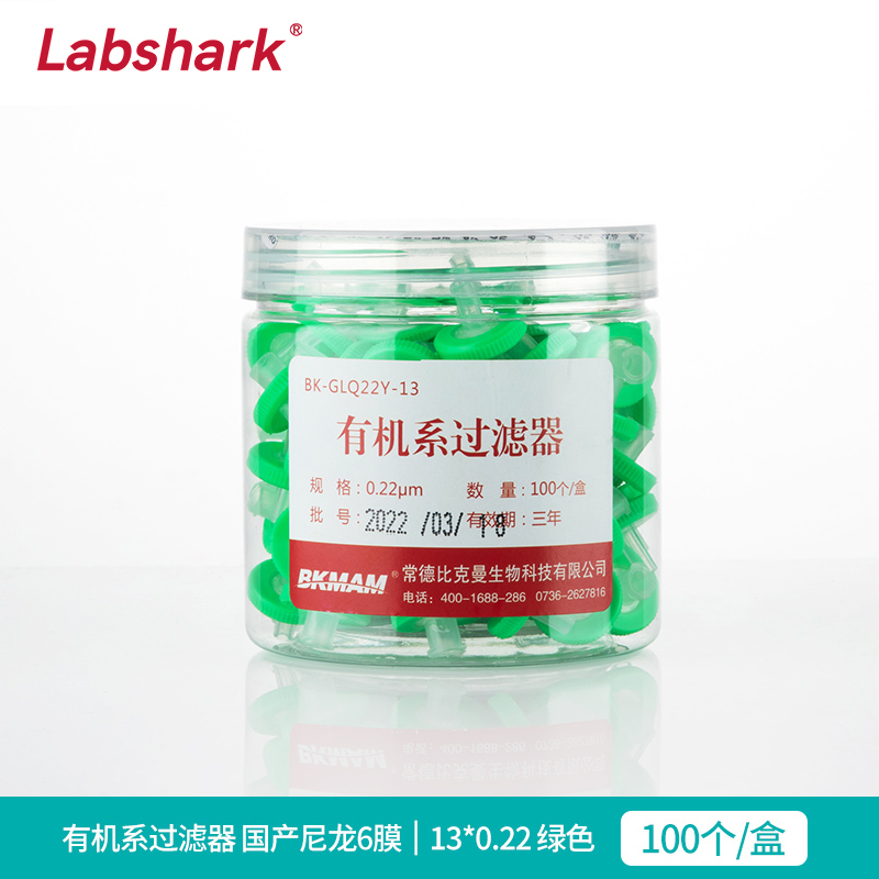 "比克曼生物针式过滤器微孔滤膜一次性过滤膜针头针筒式尼龙玻璃纤维PTFE有机系水系MCE膜滤膜滤头0.22 0.45um-有机系国产尼龙6膜 13*0.22 绿100个/盒"商品可能已被商家删除,您可查看其他相似商品!
