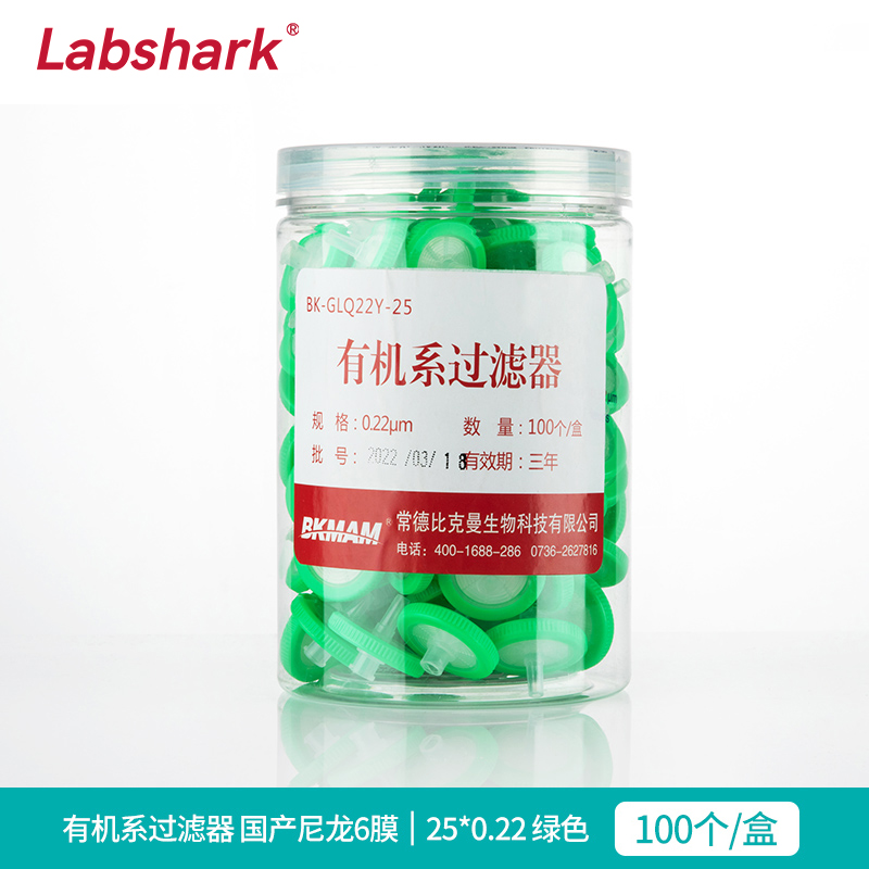 "比克曼生物针式过滤器微孔滤膜一次性过滤膜针头针筒式尼龙玻璃纤维PTFE有机系水系MCE膜滤膜滤头0.22 0.45um-有机系国产尼龙6膜25*0.22绿100个/盒"商品可能已被商家删除,您可查看其他相似商品!