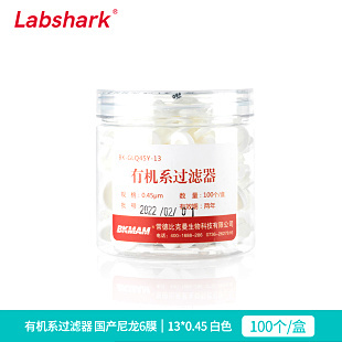 "比克曼生物针式过滤器微孔滤膜一次性过滤膜针头针筒式尼龙玻璃纤维PTFE有机系水系MCE膜滤膜滤头0.22 0.45um-Labshark有机系国产尼龙6膜13mm*0.45μm 100个/盒"商品可能已被商家删除,您可查看其他相似商品!