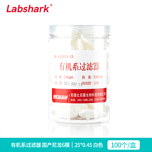 "比克曼生物针式过滤器微孔滤膜一次性过滤膜针头针筒式尼龙玻璃纤维PTFE有机系水系MCE膜滤膜滤头0.22 0.45um-Labshark有机系国产尼龙6膜25mm*0.45μm 100个/盒"商品可能已被商家删除,您可查看其他相似商品!