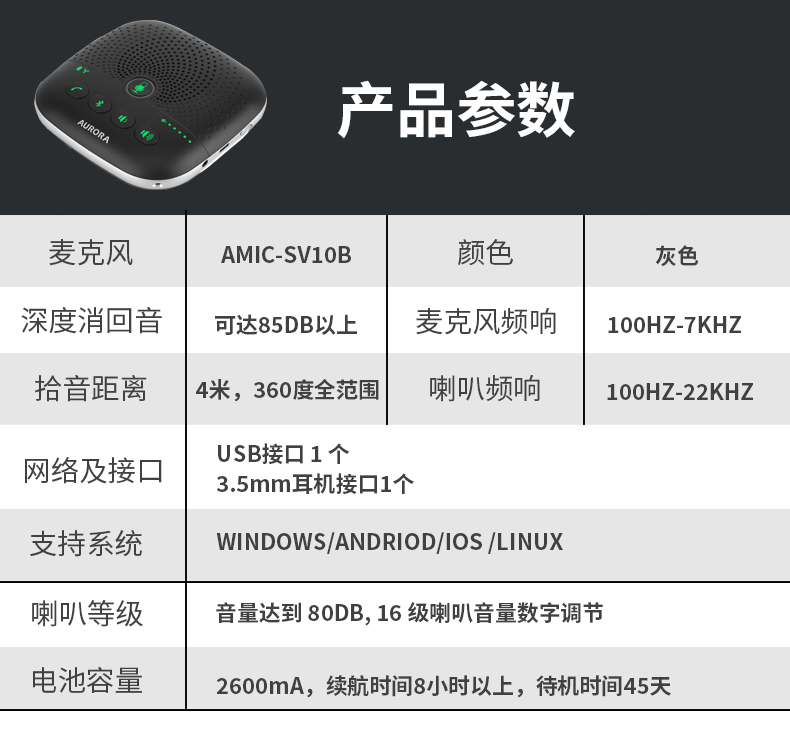 "震旦AURORA视频会议全向麦克风音频处理器会议室拾音器 无线USB蓝牙扬声器 免驱动远距离 顺丰包邮AMIC-SV10B-配合SV15B主麦适用30-60㎡会议(SV15B-EXT扩展麦)"商品可能已被商家删除,您可查看其他相似商品!