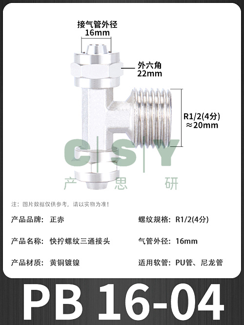 "正赤气动气管快拧外螺纹三通接头PB/PD4/6/8/10/12-01/02/04优质-PB16-04 优质"商品可能已被商家删除,您可查看其他相似商品!