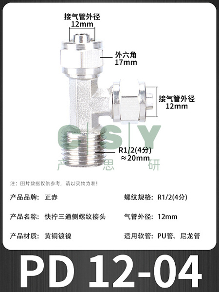 "正赤气动气管快拧外螺纹三通接头PB/PD4/6/8/10/12-01/02/04优质-PD12-04 优质"商品可能已被商家删除,您可查看其他相似商品!