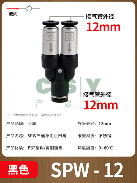 "气动单向阀止回阀快插SPU/SPV/SPT/W-04/06/08/10/12三通一进二出-SPW-12 [黑色精品] 1只"商品可能已被商家删除,您可查看其他相似商品!