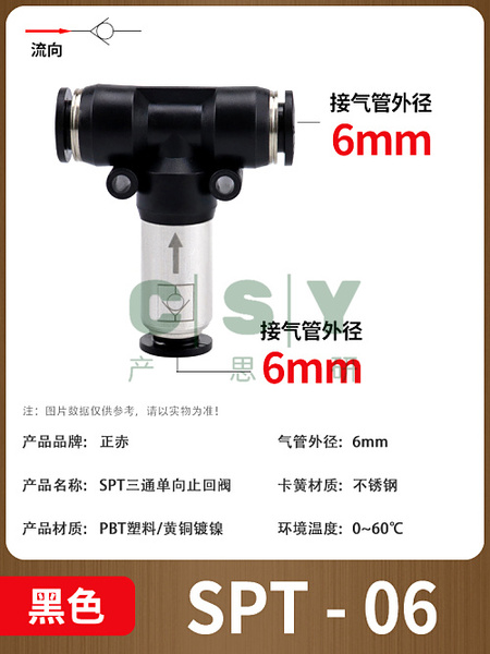 "气动单向阀止回阀快插SPU/SPV/SPT/W-04/06/08/10/12三通一进二出-SPT-06 [黑色精品] 1只"商品可能已被商家删除,您可查看其他相似商品!