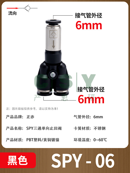 "气动单向阀止回阀快插SPU/SPV/SPT/W-04/06/08/10/12三通一进二出-SPY-06 [黑色精品] 1只"商品可能已被商家删除,您可查看其他相似商品!