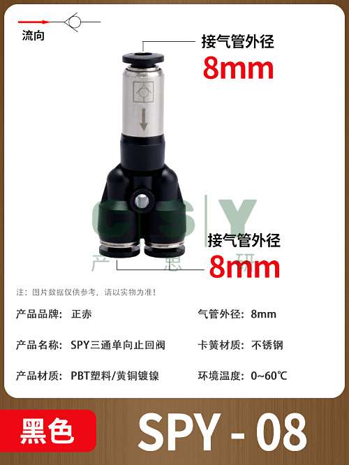 "气动单向阀止回阀快插SPU/SPV/SPT/W-04/06/08/10/12三通一进二出-SPY-08 [黑色精品] 1只"商品可能已被商家删除,您可查看其他相似商品!