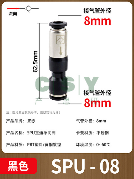 "气动单向阀止回阀快插SPU/SPV/SPT/W-04/06/08/10/12三通一进二出-SPU-08【黑色精品】 1只"商品可能已被商家删除,您可查看其他相似商品!