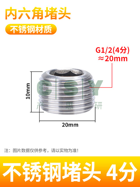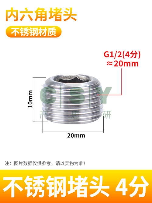 "304不锈钢内六角外丝堵头黄铜丝堵管堵螺塞闷头1分2/3/4分6分气动-不锈钢堵头4分(R1/2) 1只装 需缠生料带"商品可能已被商家删除,您可查看其他相似商品!