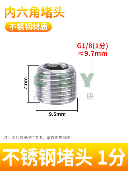 "304不锈钢内六角外丝堵头黄铜丝堵管堵螺塞闷头1分2/3/4分6分气动-不锈钢堵头1分(R1/8) 1只装 需缠生料带"商品可能已被商家删除,您可查看其他相似商品!