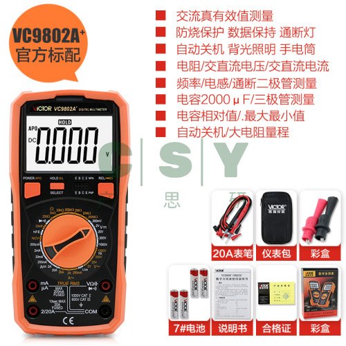 "胜利数字万用表VC98系列高精度电工防烧多用表带电容频率温度电感-VC9802A+标配"商品可能已被商家删除,您可查看其他相似商品!
