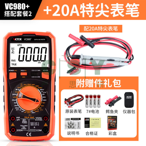 "胜利万用表数字高精度4位半VC9806+/9807A可测频率电工专用万能表-VC980+标配+20A特尖表笔"商品可能已被商家删除,您可查看其他相似商品!