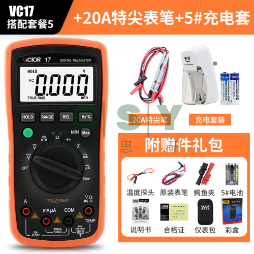 "胜利万用表数字智能自动量程VC99/97/17可测温度防烧高精度万能表-VC17标配+20A特尖+5#充电套装"商品可能已被商家删除,您可查看其他相似商品!