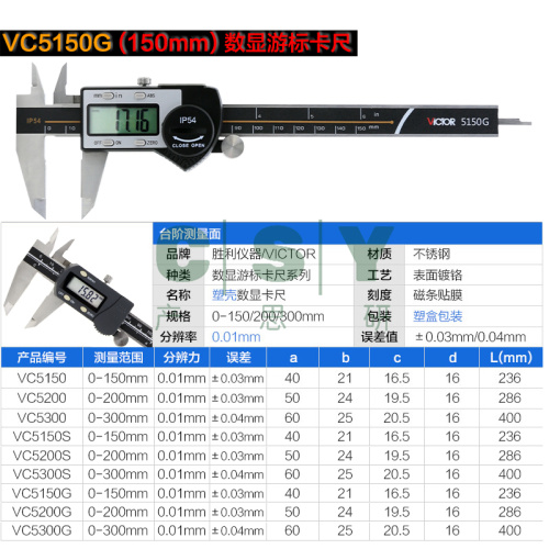 "胜利仪器四用数显游标卡尺数字型游标卡尺(公英制)不锈钢 0~300mm-VC5150G【0-150mm】数显游标卡尺"商品可能已被商家删除,您可查看其他相似商品!