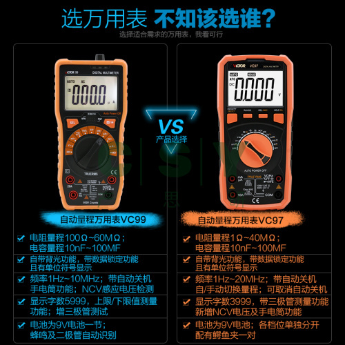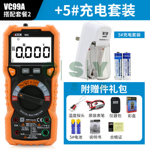 "胜利万用表数字智能自动量程VC99/97/17可测温度防烧高精度万能表-VC99A标配+5号充电套装【送仪表包】"商品可能已被商家删除,您可查看其他相似商品!