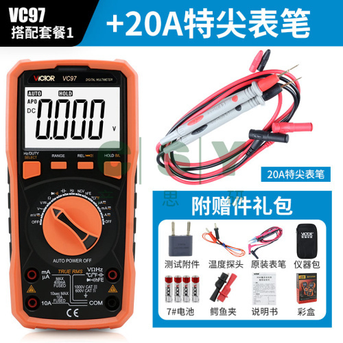 "胜利万用表数字智能自动量程VC99/97/17可测温度防烧高精度万能表-VC97标配+20A特尖表笔"商品可能已被商家删除,您可查看其他相似商品!
