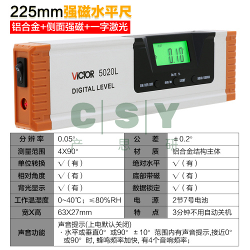 "胜利水平尺高精度强磁平水尺铝合金激光水平角度尺水平仪平衡靠尺-VC5020L官方标配【225mm.带激光】"商品可能已被商家删除,您可查看其他相似商品!