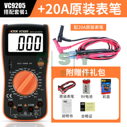 "胜利数字万用表VC9205/9208大屏幕万能表全保护电路万用表-VC9205标配+20A表笔"商品可能已被商家删除,您可查看其他相似商品!