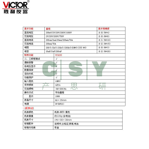 | 产品名称:数字万用表VC9205 |