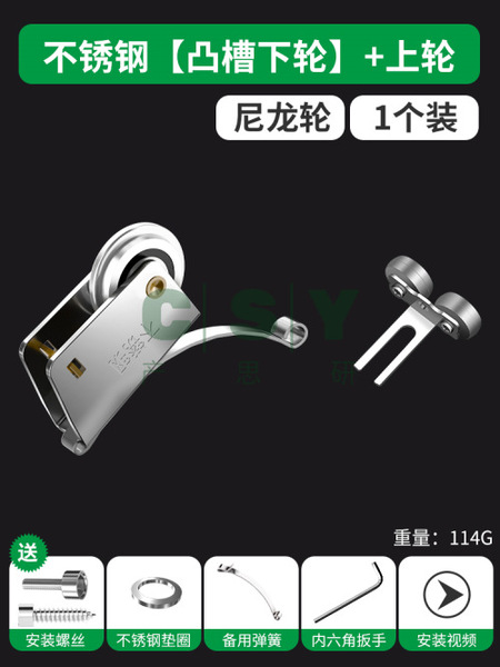 "保联推拉门衣柜门滑轮下轮厨房玻璃门轮子地轨道卫生间门滚轮导轨-不锈钢【凸槽下轮】1个+上轮1个"商品可能已被商家删除,您可查看其他相似商品!