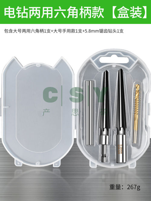 "保联锥度铰刀手用扩孔机器木工开孔神器锥形硬质合金螺旋铰刀钻头-电钻两用六角柄款【盒装】"商品可能已被商家删除,您可查看其他相似商品!