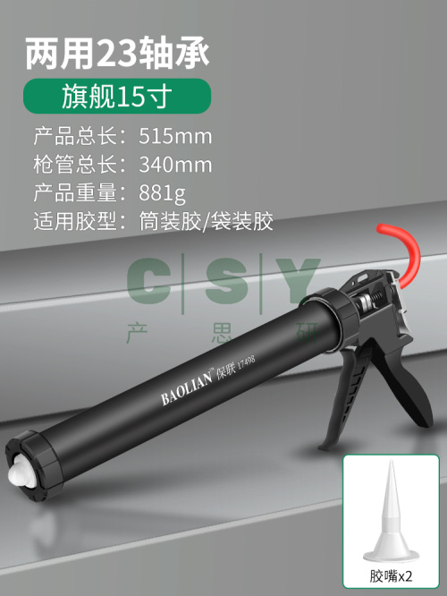 "保联玻璃胶枪省力结构胶专用打胶神器轴承密封装修美容软胶配件-旗舰款【两用23轴承】15寸(防滴漏)送胶嘴"商品可能已被商家删除,您可查看其他相似商品!