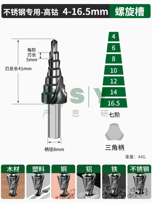 "含钴宝塔钻头M35高硬度钨钢打孔不锈钢专用开孔器金属扩孔钻阶梯-【TiAlN高钴工业级】不锈钢克星4-16.5mm七阶"商品可能已被商家删除,您可查看其他相似商品!