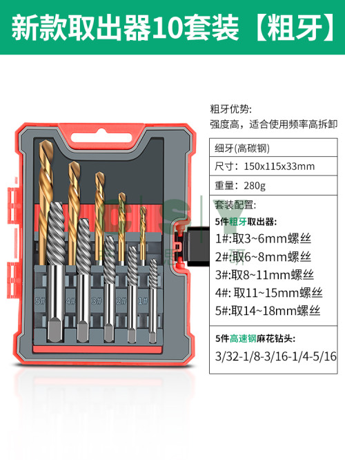 "保联断丝取出器套装断裂三角阀丝锥丝攻取螺丝生锈专用滑牙滑丝-新款取出器10套装【粗牙】"商品可能已被商家删除,您可查看其他相似商品!