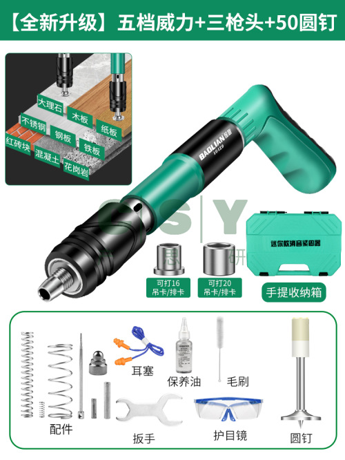 "保联迷你吊顶神器炮钉枪一体射钉枪专用打钉枪线槽气钉枪固定水泥-【全新升级】五档威力+三枪头 迷你炮钉枪+50颗圆钉"商品可能已被商家删除,您可查看其他相似商品!