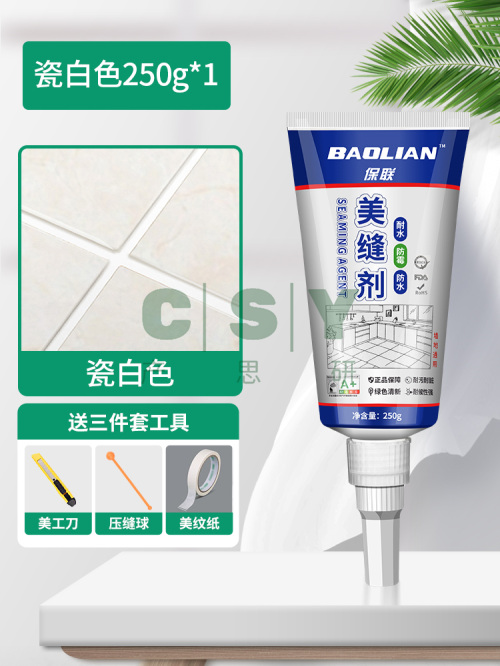 "保联美缝剂瓷砖地砖填缝剂家用厨房卫生间专用缝隙填充防水防霉胶-1支【防霉新升级】瓷白色250g 送工具"商品可能已被商家删除,您可查看其他相似商品!