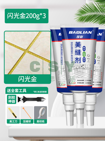 "保联美缝剂瓷砖地砖填缝剂家用厨房卫生间专用缝隙填充防水防霉胶-3支【闪光金200g】 送刮胶工具"商品可能已被商家删除,您可查看其他相似商品!