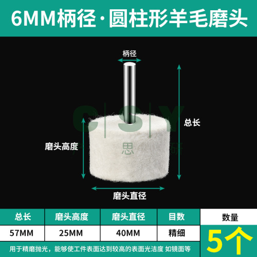 "保联羊毛抛光轮打磨头羊毛轮抛光头磨头玉石金属翡翠打磨工具镜面-6x40【圆柱形】5支"商品可能已被商家删除,您可查看其他相似商品!