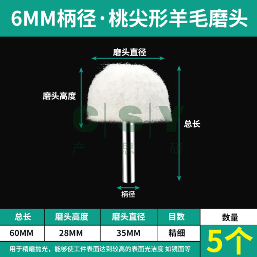 "保联羊毛抛光轮打磨头羊毛轮抛光头磨头玉石金属翡翠打磨工具镜面-6x35【桃尖形】5支"商品可能已被商家删除,您可查看其他相似商品!