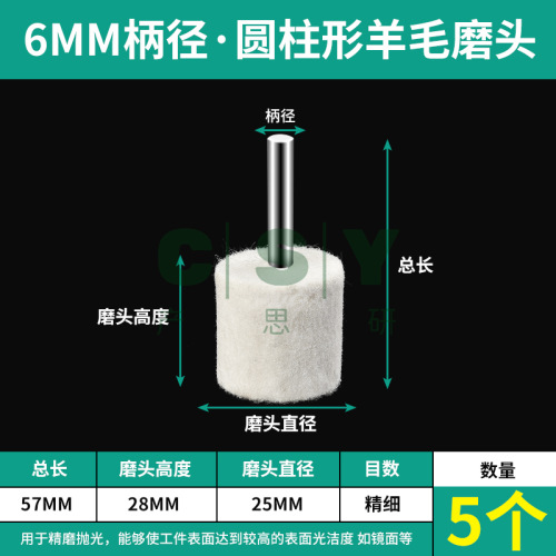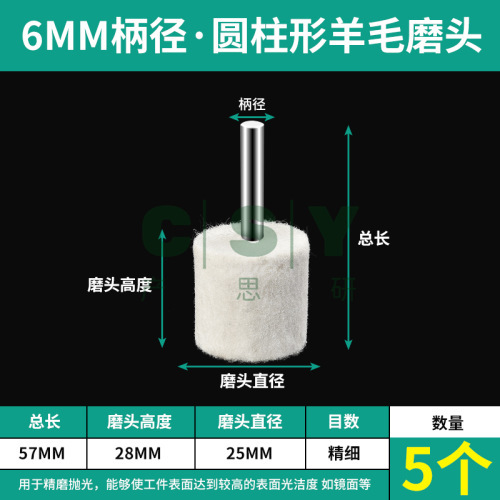 "保联羊毛抛光轮打磨头羊毛轮抛光头磨头玉石金属翡翠打磨工具镜面-6x25【圆柱形】5支"商品可能已被商家删除,您可查看其他相似商品!