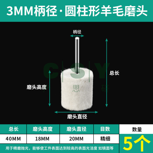 "保联羊毛抛光轮打磨头羊毛轮抛光头磨头玉石金属翡翠打磨工具镜面-3x20【圆柱形】5支"商品可能已被商家删除,您可查看其他相似商品!