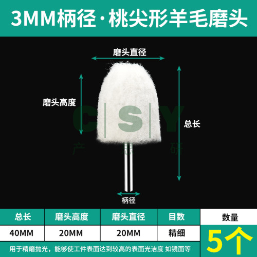 "保联羊毛抛光轮打磨头羊毛轮抛光头磨头玉石金属翡翠打磨工具镜面-3x20【桃尖形】5支"商品可能已被商家删除,您可查看其他相似商品!