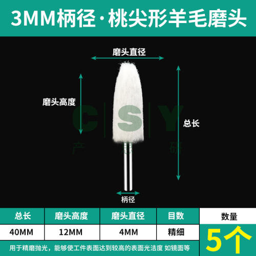 "保联羊毛抛光轮打磨头羊毛轮抛光头磨头玉石金属翡翠打磨工具镜面-3x4【桃尖形】5支"商品可能已被商家删除,您可查看其他相似商品!