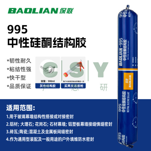 "保联995中性硅酮结构胶强力耐候密封胶外墙门窗建筑用防水玻璃胶-【内外通用】995灰色1支"商品可能已被商家删除,您可查看其他相似商品!